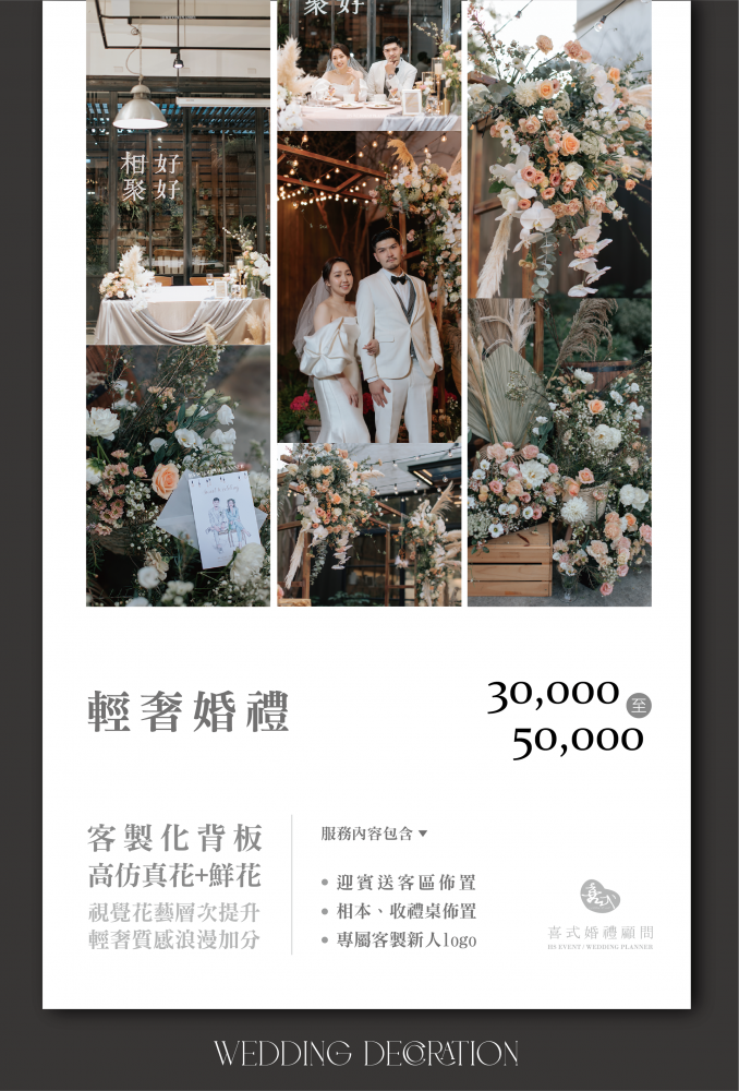 均含微客製或全客製化背板、立體 logo、全鮮花花藝